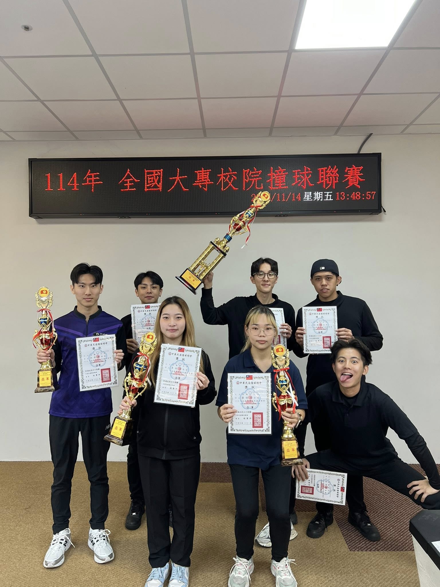 進修部運休學程114大專校院撞球聯賽奪得男團冠軍及男、女個人雙亞軍