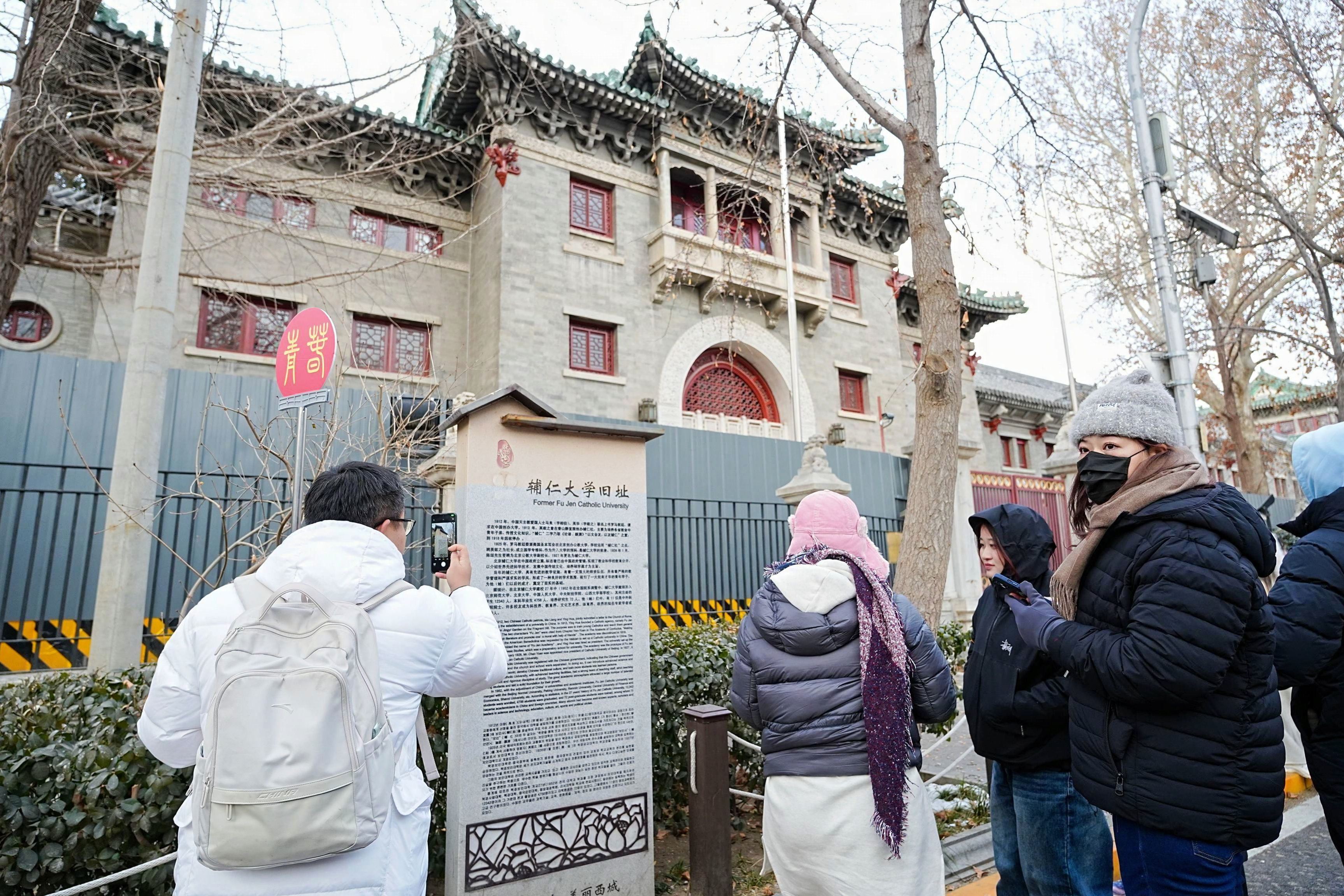 2025年12月13日,輔仁大學慶祝建校100週年,2026年01月19日,輔仁大學運休暨運資學程黃柏芳主任,帶領兩學程及體育系共32位師生,參訪北京輔仁大學舊校址(北平的舊址,北平濤貝勒府、恭王府),雖然內部尚在整修無法進入,但看到100年前本校建校的發起地點,讓學生們感受到時間累積的厚重歷史,新的一百年,從現在開始,輔仁大學,使命傳承,創新永續。